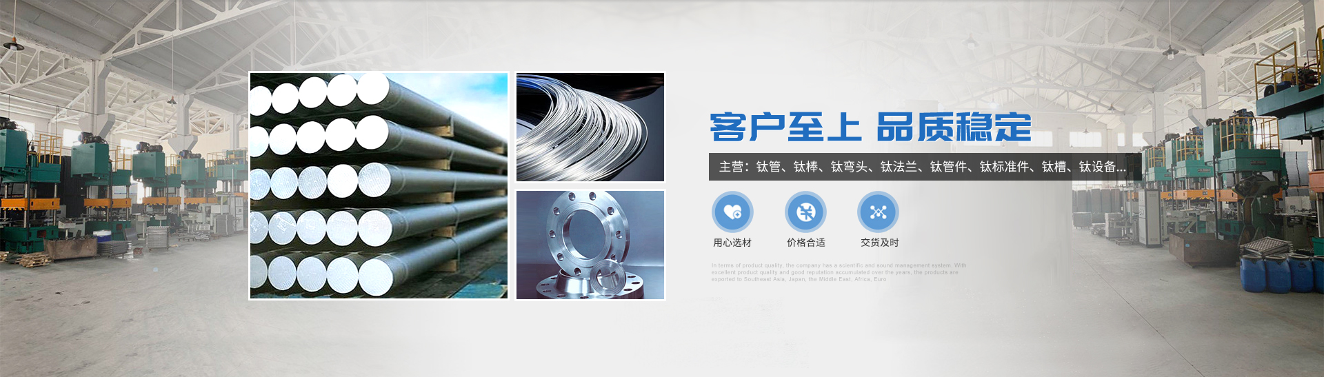 本公司的主營產(chǎn)品鈦制品有,鈦管,鈦棒,鈦彎頭,鈦法蘭,鈦管件,鈦標準件,鈦槽,鈦設(shè)備,鈦沖壓彎頭等。所生產(chǎn)各種規(guī)格的鈦制品主要運用于化工、電鍍、石油、電子、環(huán)保、海洋等領(lǐng)域"以質(zhì)量求生存,靠服務(wù)求發(fā)展“為宗旨,客戶的滿意是我們的追求,歡迎各界用戶來函來電,傳真,洽談貿(mào)易。